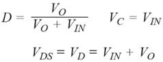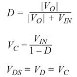 VOUT2電源系采用Cuk拓撲結構,相關技術文獻中對此有廣泛介紹。 為了解電源系元件上的電壓,需要使用以下基本公式。