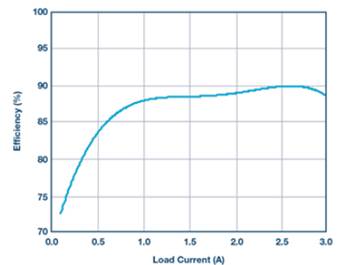 VOUT2效率曲線如圖2所示。在本例中,LTC3892轉換器的輸入為10 V至20 V。輸出電壓為10 A、 +5 V和5 A、-5 V。