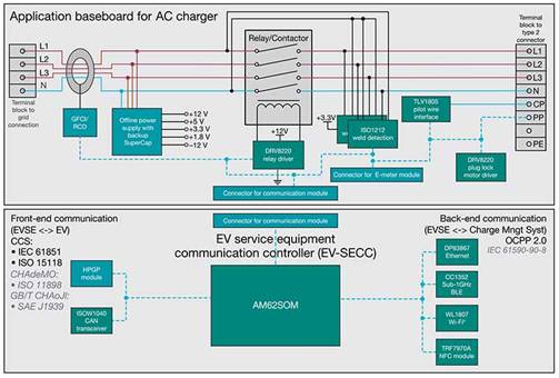用于商業和住宅用途的典型電動汽車 (EV) 充電站設計包括電能計量、剩余電流檢測(交流和直流)、隔離安全合規性、繼電器和接觸器,還具有驅動功能、雙向通信以及服務和用戶界面。雖然充電站的目標是高效地將電力傳輸到車輛,但實現電力傳輸僅是其最初的功能。