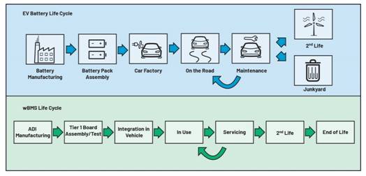 圖2.電動汽車電池生命周期及其相關的wBMS生命周期