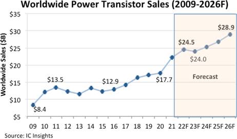 自2021年以來,功率半導體價格一直在走高,當時許多系統制造商在Covid-19病毒大流行爆發和2020年全球緊急封鎖后開始增加產量。電力晶體管和其他廣泛使用的半導體的供應緊張和短缺,使許多制造業工業部門(尤其是汽車和工業設備)的平均銷售價格居高不下,盡管最近經濟增長放緩,消費者和公司為應對高通貨膨脹而收緊腰帶,以及美聯儲為應對全面衰退的風險而發起的利率上調。