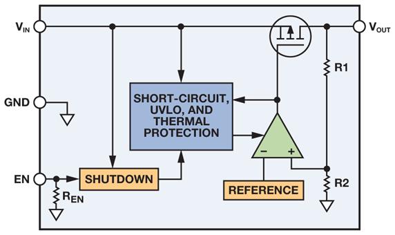 客戶經常會就LDO在壓差模式下的PSRR請教應用工程師。開始時,這似乎是個合理的問題,但只要看看簡化的框圖,就知道這個問題毫無意義。當LDO工作于壓差模式時,調整FET 的可變電阻部分為零,輸出電壓等于輸入電壓與通過調整FET 的RDSON的負載電流導致的壓降之差。LDO不進行調節,而且沒有增益來抑制輸入端的噪聲;只是充當一個電阻。FET的RDSON與輸出電容一起形成一個RC濾波器,提供少量殘余PSRR,但一個簡單的電阻或鐵氧體磁珠即可完成同一任務,而且更加經濟高效。