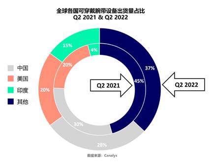 在健康觀念深入人心及消費升級的雙重影響下,智能可穿戴設備的市場需求持續增長,智能藍牙手環便是其中熱門方向之一。根據Canalys數據顯示,2022年Q2全球可穿戴腕帶的出貨量達到4170萬臺,其中中國市場銷量全球第一。