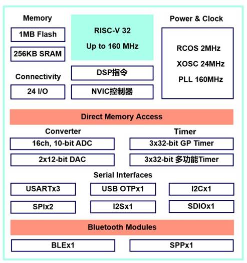 ② 工作主頻160 MHz、1MB Flash 、256KB SRAM;