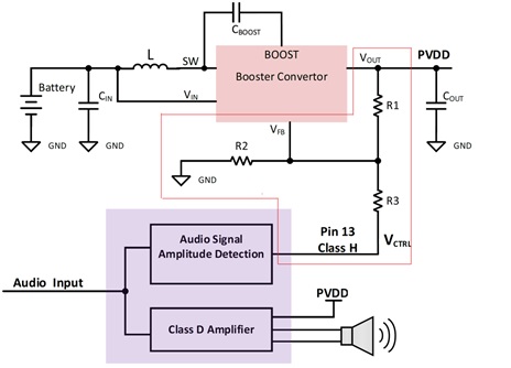 ACM3108/ACM3128/ACM3129功放芯片系列動態調整升壓CLASS H功能說明