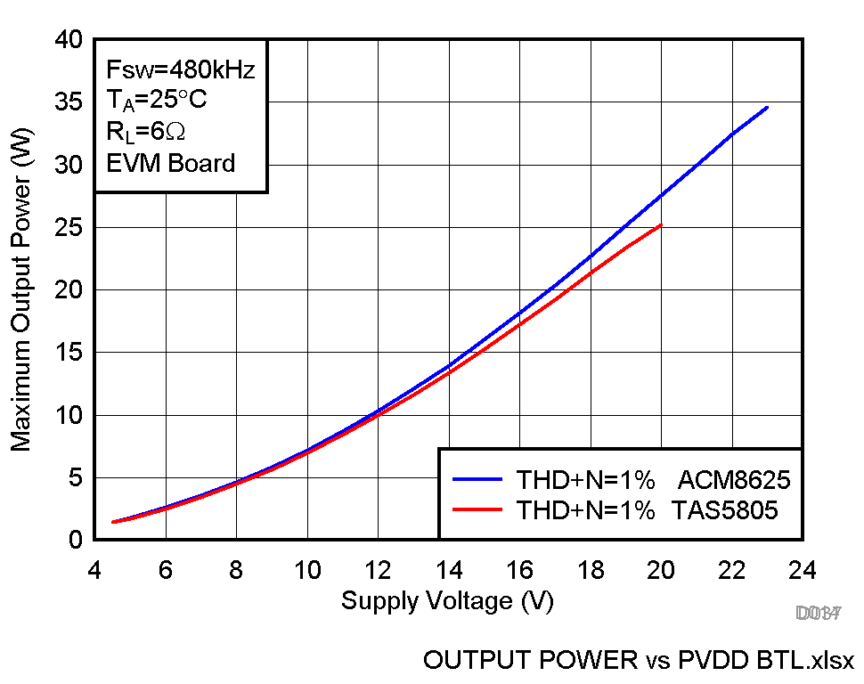 ACM8628 2×41W、立體聲 (6Ω, 24V, THD+N = 1%) ; 2×33W, 立體聲 (4Ω, 18V, THD+N = 1%) ; 1×82W, 單通道 (3Ω, 24V, THD+N = 1%) TAS5805/ACM8625/ACM8622 TSSOP-28 4.5V-26.4V 2×41W立體聲 /1×82W單通道數(shù)字輸入功放、內(nèi)置DSP小音量低頻增強(qiáng)等算法