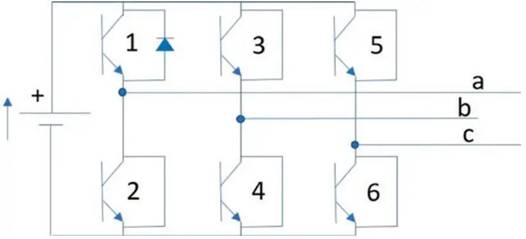 有刷直流電機(jī)使用機(jī)械換向,無(wú)刷直流電機(jī)與此不同,采用電子換向。這意味著電機(jī)的相位,根據(jù)轉(zhuǎn)子相對(duì)于定子的位置依次通電和斷電。對(duì)于三相無(wú)刷直流電機(jī),驅(qū)動(dòng)器由六個(gè)電子開(kāi)關(guān)(通常為晶體管)組成,通常稱為三相H 橋(圖1)。此配置允許三個(gè)雙向輸出,為電機(jī)的三相通電。