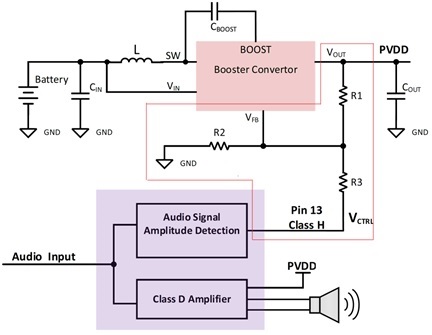 動態(tài)升壓既能保證了瞬態(tài)大功率的動態(tài)范圍,又能降低整機(jī)功耗,是比較理想的綜合方案。