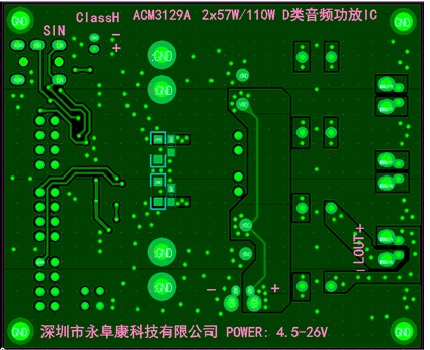 ACM3129 2×57W, 1% THD+N, 24V, 4Ω, BTL ; 1×110W, 1% THD+N, 24V, 2Ω, PBTL TSSOP-28(散熱片在背部,支持外接散熱器) 4.5V-26.4V 2×57W/110W高性能D類音頻功放,超低功耗、展頻功能、動態(tài)調(diào)整升壓Class H