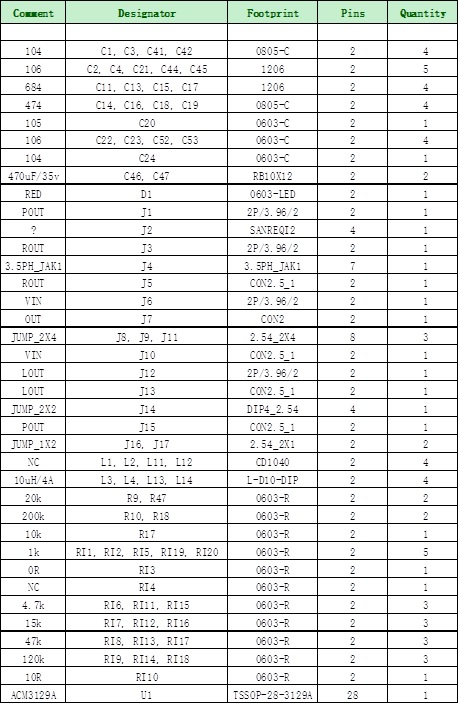 ACM3129A DEMO BOM表