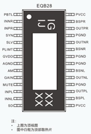 2、采用IU8689大功率D類音頻功放IC,工作電壓4.5V-28V,25V提供2x70W/4歐 ( THD+N=1%)持續功率輸出;28V提供100W/4歐 ( THD+N=10%)持續功率輸出;低Rdson(相比TPA3116更。WC音質有足夠的下潛度;采用EQB-28封裝(散熱片在背部,支持外接散熱器)。