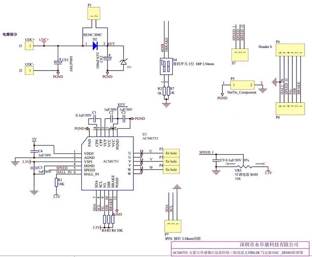 深圳市永阜康科技有限公司現在大力推廣一顆三相無傳感器正弦波驅動直流無刷馬達驅動IC-ACM6753,集成驅動算法+預驅+MOS,內置電流檢測,外圍元件僅需5個電容,應用極其簡單。采用無霍爾傳感器控制的正弦波驅動(支持單霍爾的應用),有助于降低振動與噪聲,適用于直流落地扇、IT設備散熱風扇、冰箱風扇、水泵、空氣凈化器等產品。