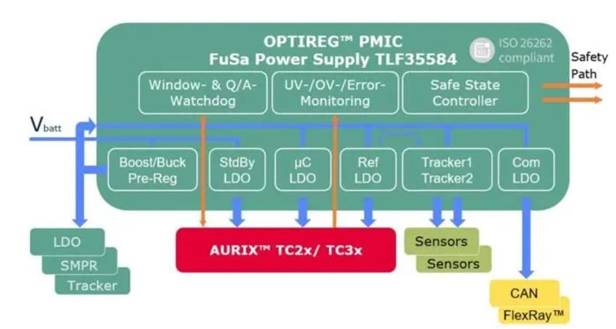 對(duì)于PMIC(電源管理集成電路)大家都不陌生,幾乎所有用電設(shè)備都需要用到它,電動(dòng)汽車當(dāng)然也不例外。我們上面已經(jīng)提到,在快速充電場(chǎng)景下,電池系統(tǒng)的危險(xiǎn)系數(shù)會(huì)更高,此時(shí)BMS的安全作用便會(huì)更加凸顯。那么,下面我們?yōu)榇蠹彝扑]一款器件來幫助BMS提升安全性能,該器件在貿(mào)澤電子上的料號(hào)為TLF35584QVHS2XUMA1,來自制造商英飛凌。