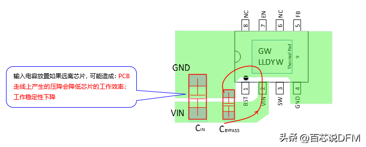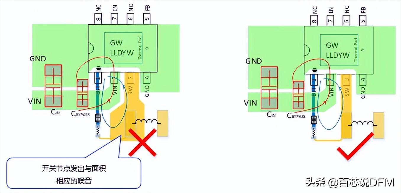 1、對于BUCK芯片而言,要想使輸入環(huán)路盡可能小,電感要靠近芯片SW引腳放置;