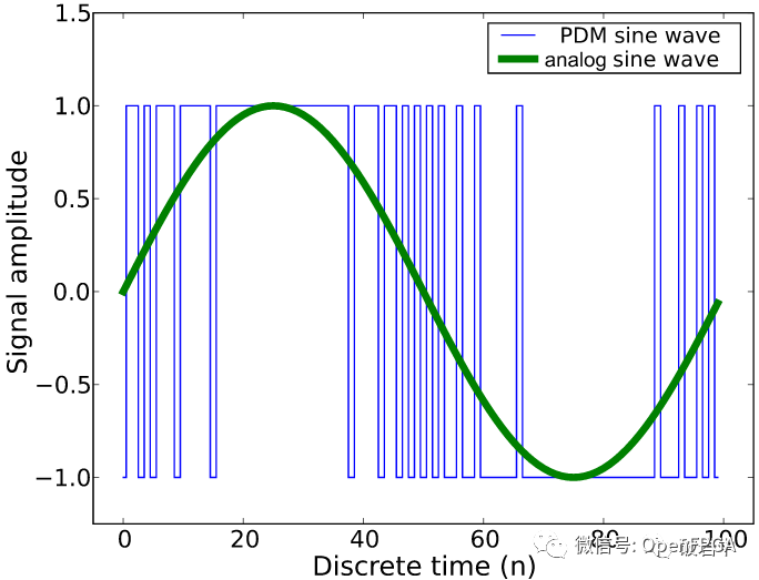 PDM就是經過了以上的∑-Δ調制而得到的數字信號,如果把這一連串數字信號放在同一標尺上和原始信號相比,會發現數字"0"和"1"隨著信號電頻的增減成都而密度產生相應變化,所以稱為是脈沖密度調制**(Pulse Density Modulation)。