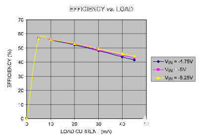 圖2.V時圖1電路的效率與負載的關系在電平為 -4.75V、-5V 和 -5.25V。