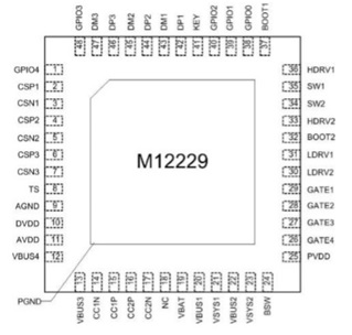 M12229采用QFN-48(6*6)封裝,管腳耐壓達 48V,支持軟啟動功能,具備過壓/欠壓、過充/過放、過溫、過壓、過流、短路保護等多重保護措施。