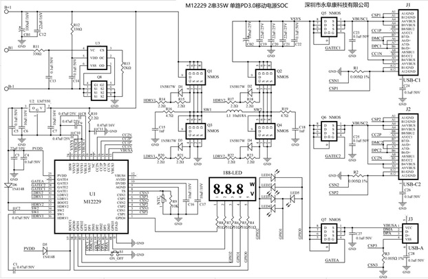 M12229 雙節串聯鋰電池充放電管理的35W移動電源雙向快充IC方案
