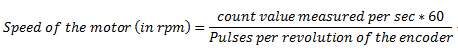 由于我們需要每秒跟蹤計(jì)數(shù)值,我們可以每 1 秒產(chǎn)生一個(gè)中斷。在中斷服務(wù)例程中,我們可以捕獲計(jì)數(shù)寄存器值,然后將其清零(即,用于測(cè)量下一秒的速度),并使用等式 1 可以確定電機(jī)的速度。