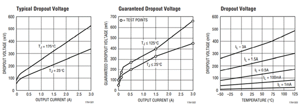即輸入與輸出之間能夠維持正常工作的最小壓差。VIN=VOUT+Vdropout。芯片的的設計工藝和結構不同,壓差不同;電流增加溫度升高壓降也會增大。