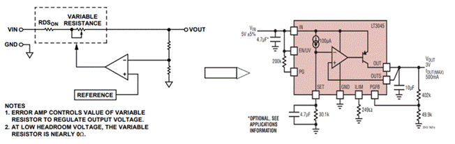 ADI 基于電流基準構架的LT3042、LT3045和LT3094系列產品在節省時間和成本的同時提高應用的性能。相比舊的構架極大的改善了電壓調節能力和瞬態響應。它們的噪聲和PSRR性能不受輸出電壓的影響。