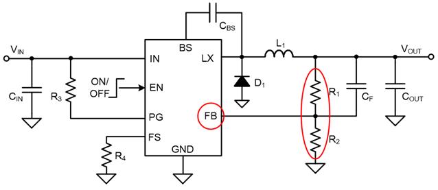 電源是現代電子產品必不可缺的模塊,現今大多數的通用電源芯片都會提供如下圖所示的反饋引腳,便于客戶使用反饋電阻實現所需的輸出,簡化設計并節省調試時間。但是通用化也從根本上制約了轉換器的帶寬及瞬態響應能力。這種情況下,設計師可以通過使用前饋電容在一定程度上對此進行改善。