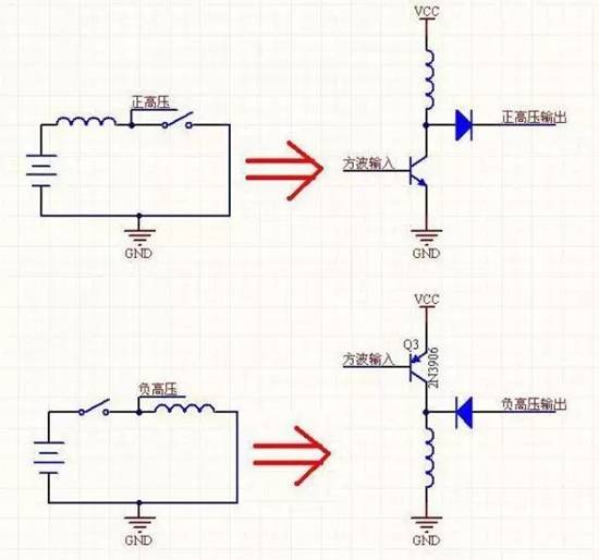 你可以清楚看到演變,電路中把開關(guān)換成了三極管,用固定頻率的方波控制三極管的開關(guān)就能實現(xiàn)升壓。不要小看這兩個圖,事實上,所有開關(guān)電源都是由這兩個圖組合變換而來的。