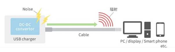 該噪聲是從連接充電器和供電對象設備的電纜發出的,有可能會干擾設備的工作和通信。