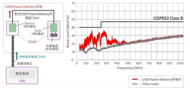 我們使用USB Power Delivery測試基板對供電時的輻射噪聲進行了調查。