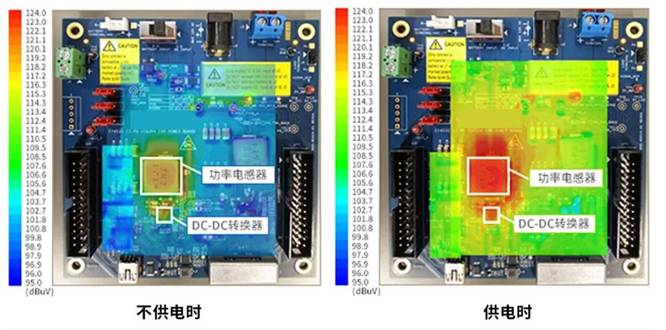 已確認到供電側的電源線(DC-DC轉換器及功率電感器)周邊的噪聲電平較高。
