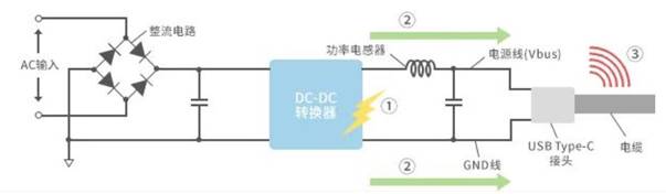 由于支持USB Power Delivery的大功率充電器具有較大的供電電流值,因此DC-DC轉換器的開關噪聲往往比以前的USB充電器更大。
