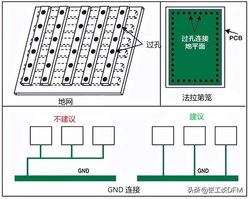 在PCB設計中最常用的就是低電感接地系統。最大化PCB上的接地面積可以降低系統中的接地電感,這樣可以減少電磁輻射和干擾,可以使用不同的方法將信號接地。