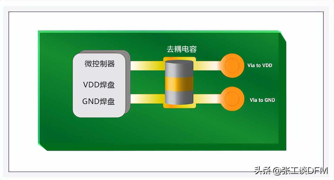 當 IC 工作時,由于其內部結構,它們會以高頻進行切換。這種情況會在 IC 連接軌道中產生開關噪聲。如果不控制這種噪聲,它將導致發射,從而導致 EMI 。通過在 IC 附近放置一個去耦電容,可以減少 PCB 上開關噪聲的傳播并將噪聲引導至地面。