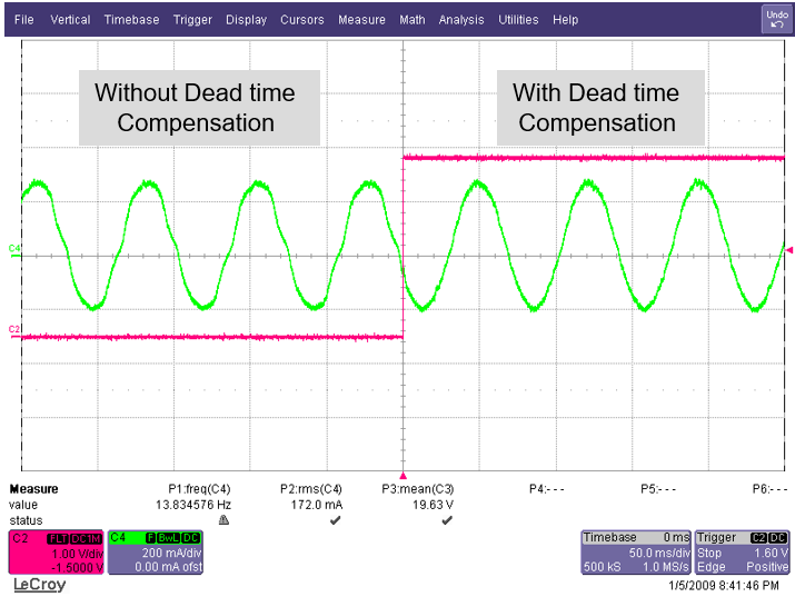 要管理這種額外的噪聲,工程師可以利用諧振控制器集成死區時間補償,以便控制相電流中的諧波分量,從而緩解因死區時間導致的電流失真,如圖 5 所示。