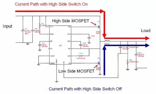 DC/DC 開關電源因其高效率而廣泛應用于現代許多電子系統中。例如,同時擁有一個高側 FET和低側 FET 的降壓同步開關穩壓器,如圖 1 所示。這兩個 FET 會根據控制器設置的占空比進行開關操作,旨在達到理想的輸出電壓。降壓穩壓器的占空比方程式如下: