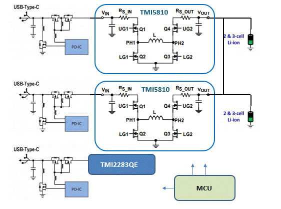 TMI5810應用在雙Type-c 支持雙向充放電應用方案