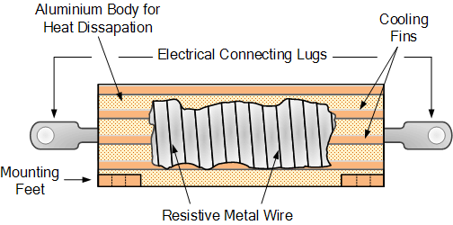 功率線繞電阻器的一個主要用途是用于電火的電加熱元件,它將流過它的電流轉化為熱量,每個元件耗散高達 1000 瓦,( 1kW) 的能量。線繞電阻器類型以“WH”或“W”符號為前綴(例如WH10Ω)。 |