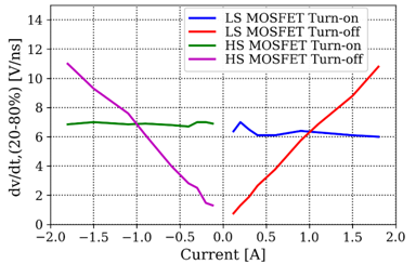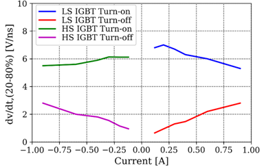 圖11:在Tc,max下,IM105-M6Q1B驅動板在不同開關電流下的電壓變化率(dv/dt,20-80%)