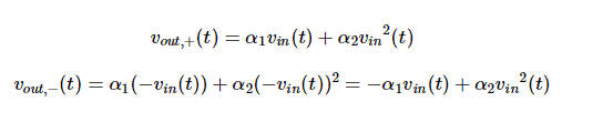 假設我們的非線性電路是無記憶的(即任何時刻的輸出僅取決于同時的輸入)。我們可以使用以下等式來近似非線性輸入輸出特性: