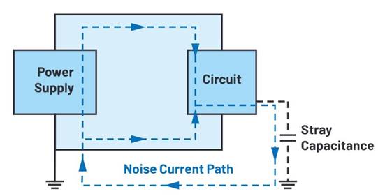 圖1.傳導輻射、共模噪聲電流路徑。
