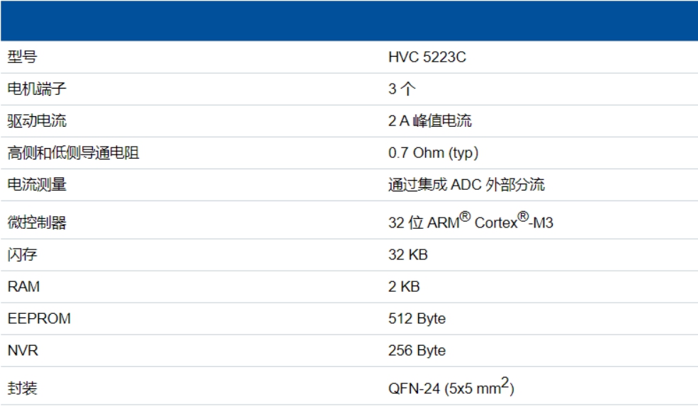 TDK 株式會社 正在擴大其 Micronas 嵌入式電機控制器系列 HVC,并推出 HVC 5223C。這是一款經認證 的汽車級一級產品,全集成電機控制器,可驅動峰值相電流為 2 A 的小型有刷(BDC)或無刷(BLDC)電機。HVC 5223C 采用緊湊型 5x5 平方毫米 24 針 QFN 封裝,在功能上與 HVC 5222C 引腳兼容,HVC 5222C具備1A峰值電流能力。樣品現可供客戶評估。