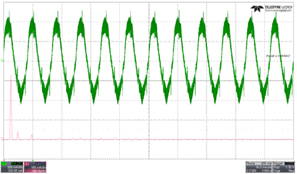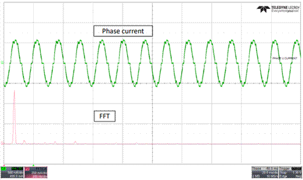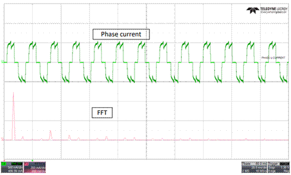 圖 4:相電流波形與 FFT 連續 PWM 之間的關系