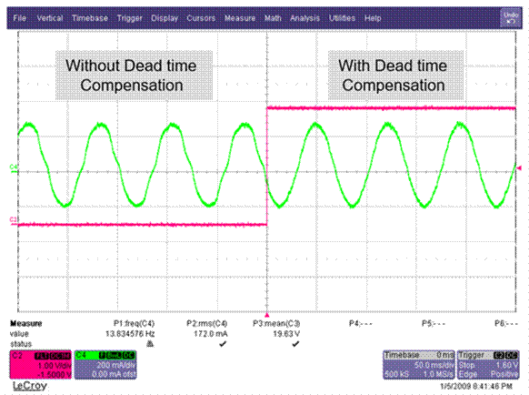 圖 5:無傳感器 FOC 死區時間補償分析