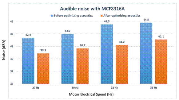 例如,TI 無傳感器 BLDC 集成梯形控制柵極驅動器(如 MCT8329 和 MCT8316)采用此內置功能來優化多種電機頻率下的聲學性能,如圖 9所示。