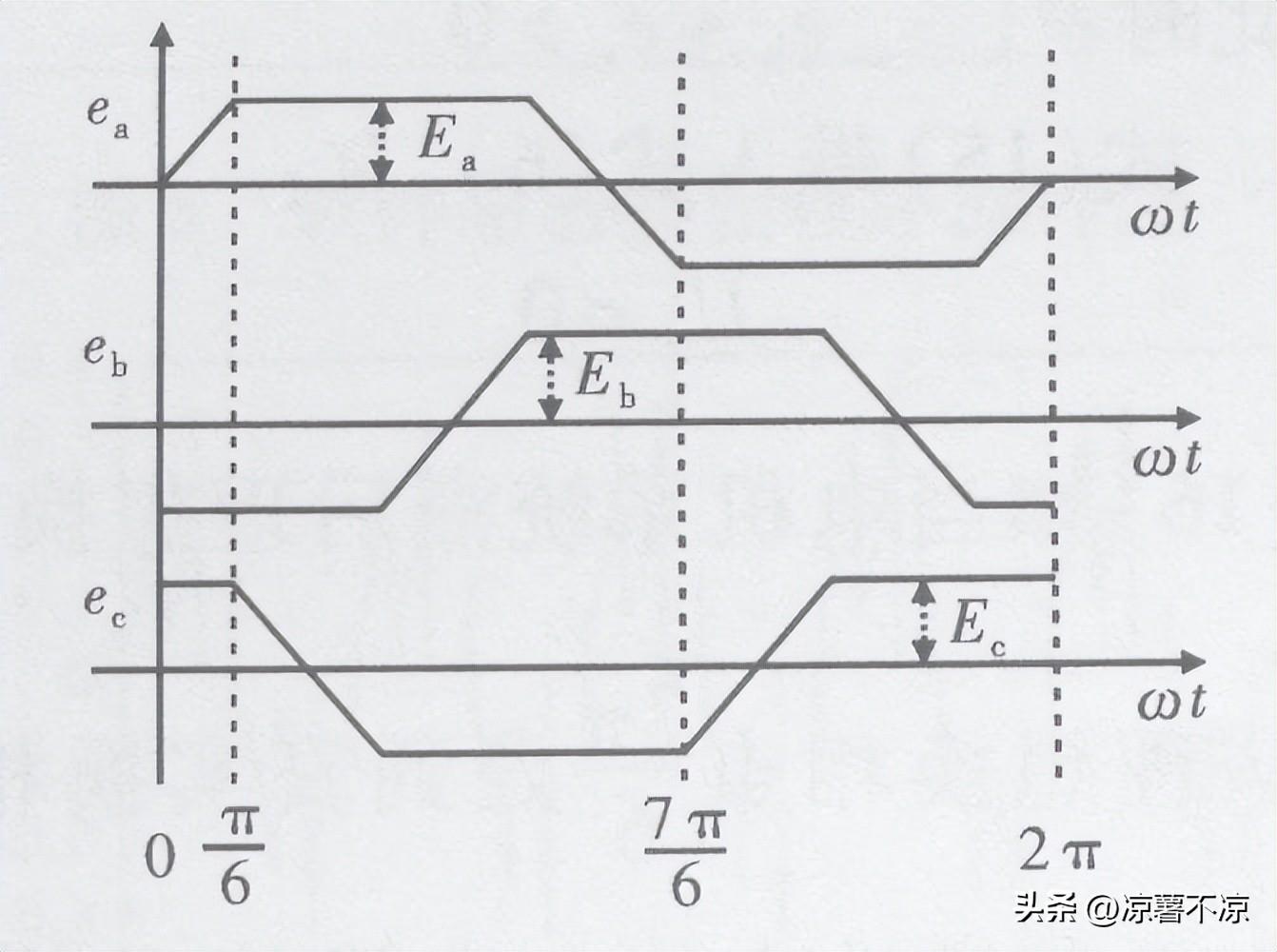 如果三相位置傳感器的安裝定位,使得當(dāng)轉(zhuǎn)子磁極軸線位于A相反電動(dòng)勢(shì)的過(guò)零點(diǎn)處時(shí)A相位置傳感器輸出信號(hào)發(fā)生跳變。