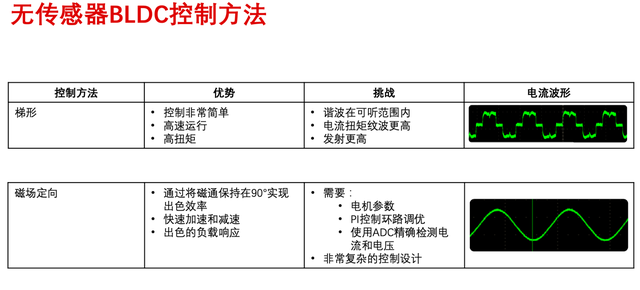 其一,BLDC系統(tǒng)控制非常復(fù)雜,開發(fā)周期也會隨之拉長;其二,由于系統(tǒng)變得復(fù)雜,硬件電路板和器件也會增多,整體電路板尺寸也會增大,比如在設(shè)計(jì)BLDC電機(jī)驅(qū)動需要類似變頻器的電路板、進(jìn)行電流采樣、開關(guān)器件切換等;其三,設(shè)計(jì)周期延長提高了開發(fā)成本,電路板尺寸和器件的增多提高了材料成本。