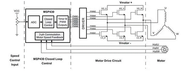 轉子速度與電機的脈沖寬度調制(PWM)工作頻率成正比,這是控制啟動電流、扭矩和功率的基本工作頻率。