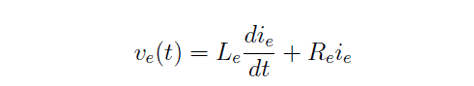 在直流電機中,磁通量由定子上的繞組產生。假設定子只有一個極性端子,其特征是與其繞組相關的電感 Le 和與導體泄漏相關的電阻器 Re 。該電路的方程模型為: