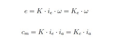 Ke 和 Kc 是電機的兩個常數,稱為橢圓常數和扭矩常數,ω 是角速度。