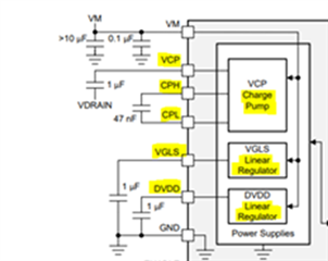 • VM 是電機驅動器 IC 的主電源,通常偏置在電機的電壓電平。